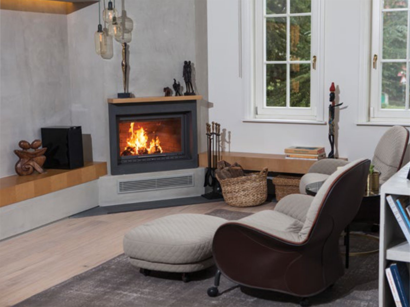 ‘Ocean Stone’ Doğal Taştan Gövdeli, Ahşap Üst Tablalı, Modern Tarzlı Şömine Dış Giydirmesi